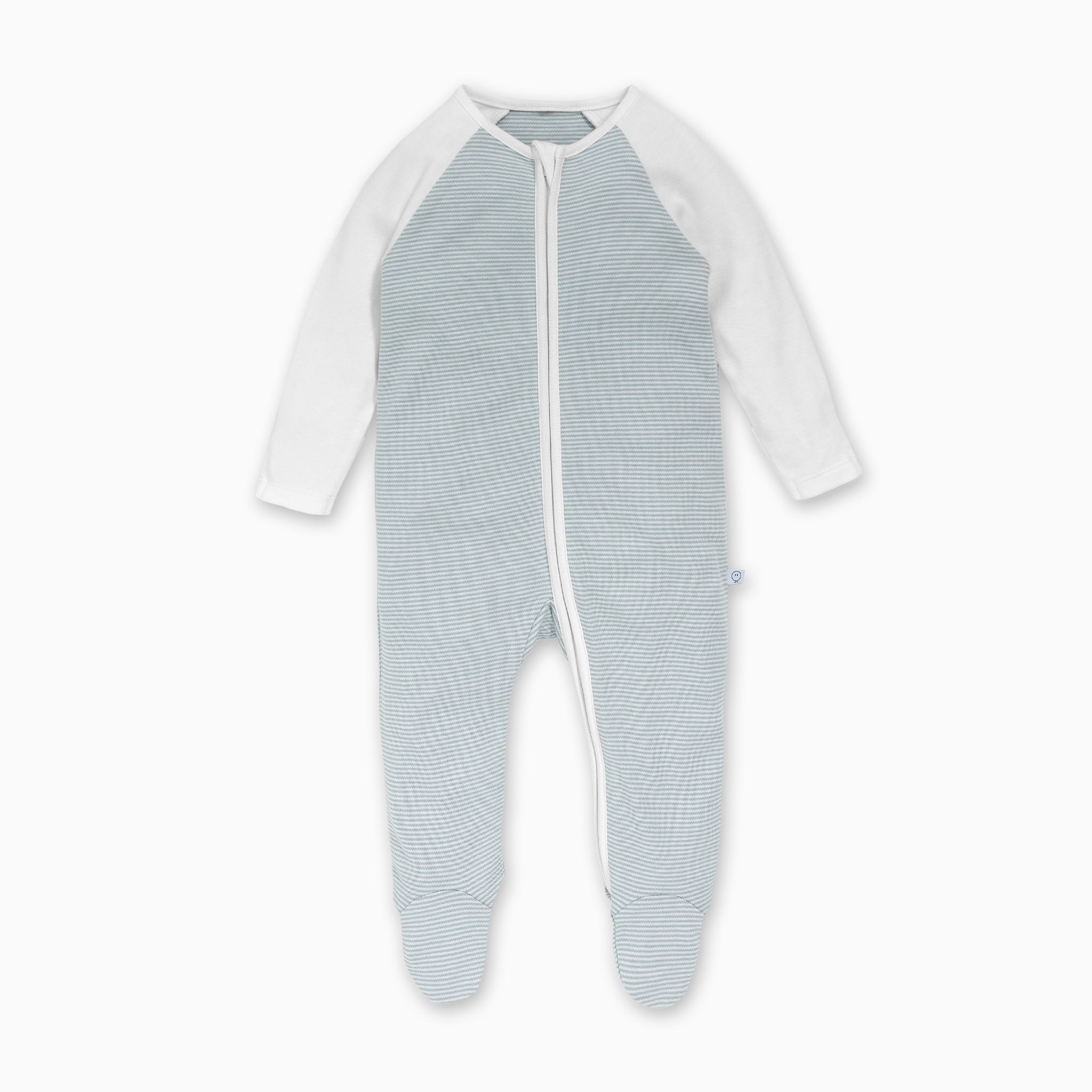 Crafted in organic fabrics, this zip-up sleepsuit has contrast sleeves. The zip front makes dressing your little one simpler.